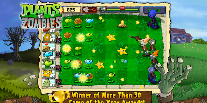 Plants vs. Zombies - Get ready to soil your plants as a mob of fun-loving zombies is about to invade your home. Use your arsenal of 49 zombie-zapping plants — peashooters, wall-nuts, cherry bombs and more — to mulchify 26 types of zombies before they break down your door.